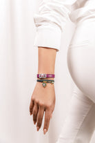 La montatura, incorniciata da una doppia fila di zirconi tondi, racchiude un cuore di luce: la gemma centrale, colorata e vibrante, che rende unico ogni bracciale.
