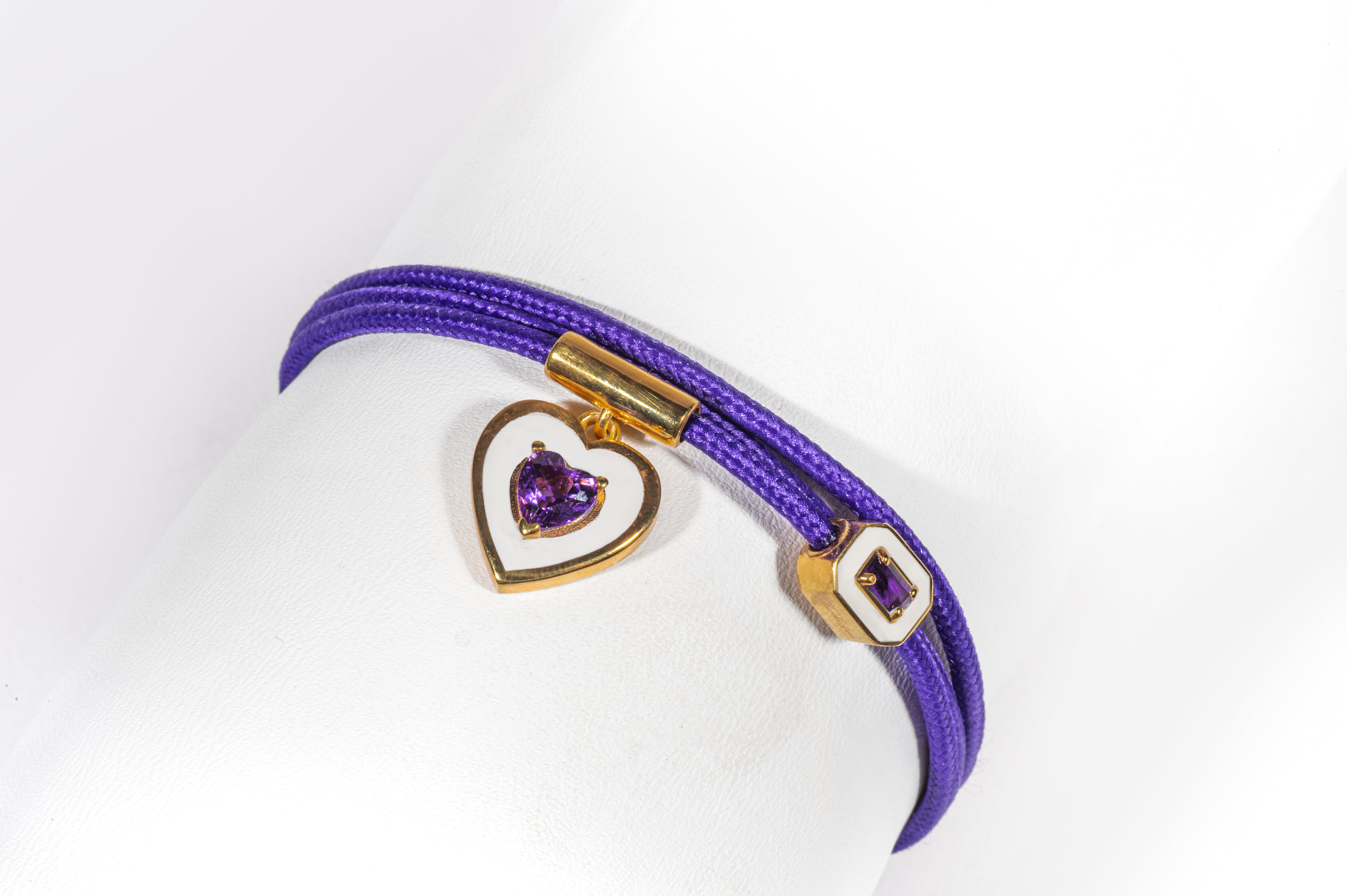 Realizzato in argento 925 con finiture dorate, smalto colorato e gemme sintetizzate in laboratorio, AMELIS può essere indossato sia al polso come bracciale, sia al collo come choker.