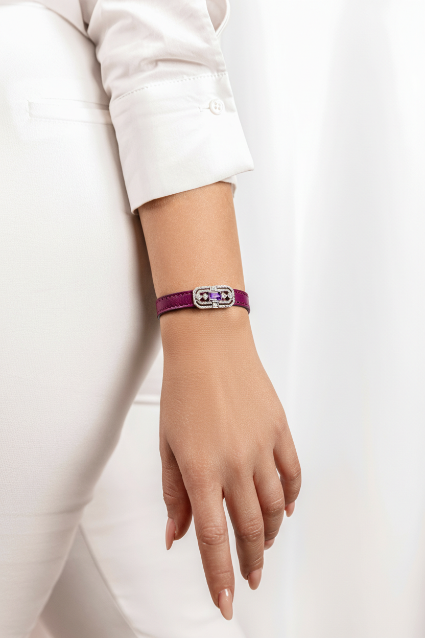 AURIA rappresenta l’incontro tra eleganza classica e forza contemporanea: un gioiello che fonde il carattere della pelle con la luminosità dell’argento, in un equilibrio raffinato e deciso.